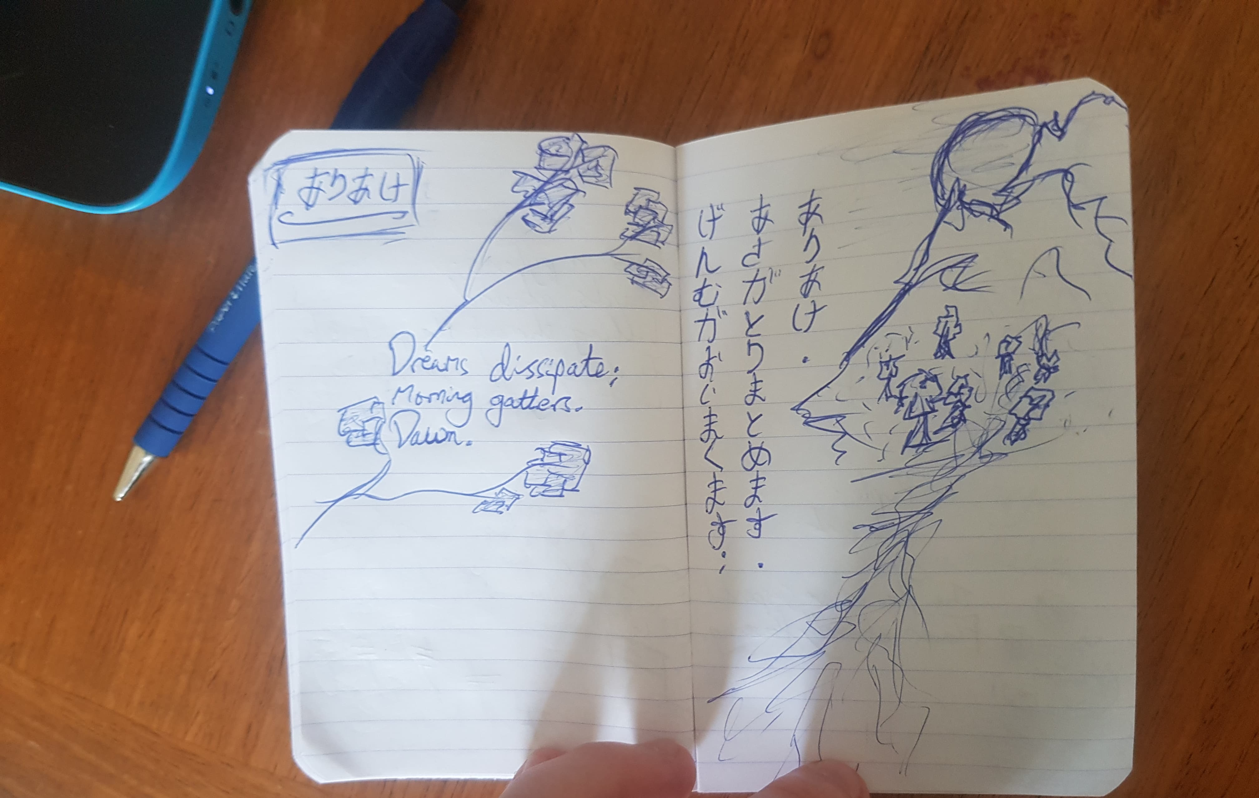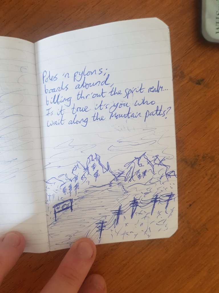 So, here is the idea: I am going to fill notebooks with hand-written poetry, making various selections from all those found on here, along with doodles and haiga. For example: one book might contain only tanka poems; another only free-verse poems; one might be full of poems that could be interpreted to all be touching on a certain theme; etc. They can also be partially or wholly bespoke – so, someone can make a list of my poems that they want, and those will be the ones I write in. Plus others, if there is space for it.