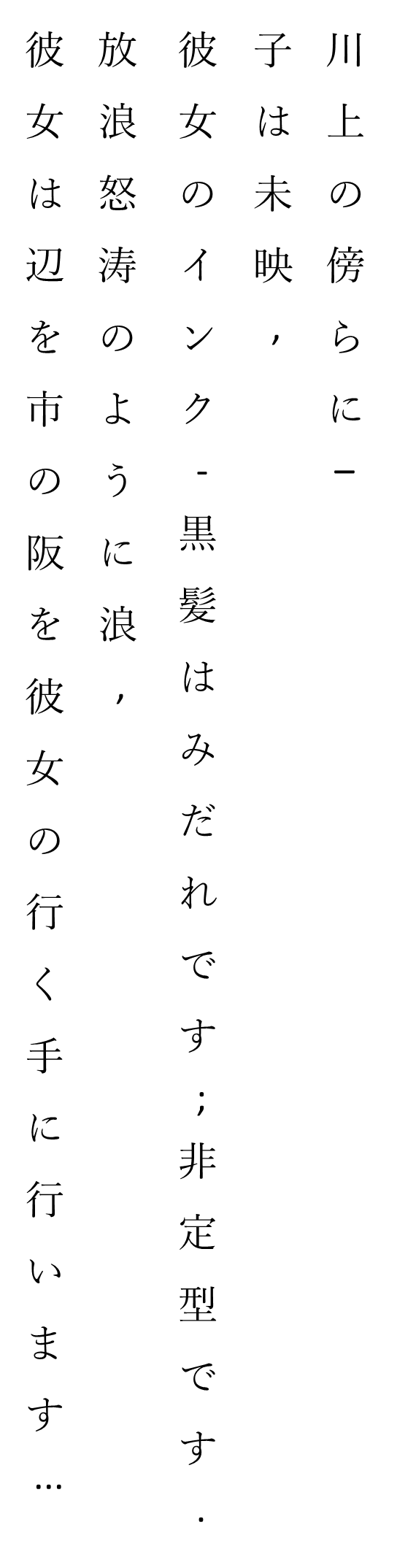 her ink-black hair entangled; free.